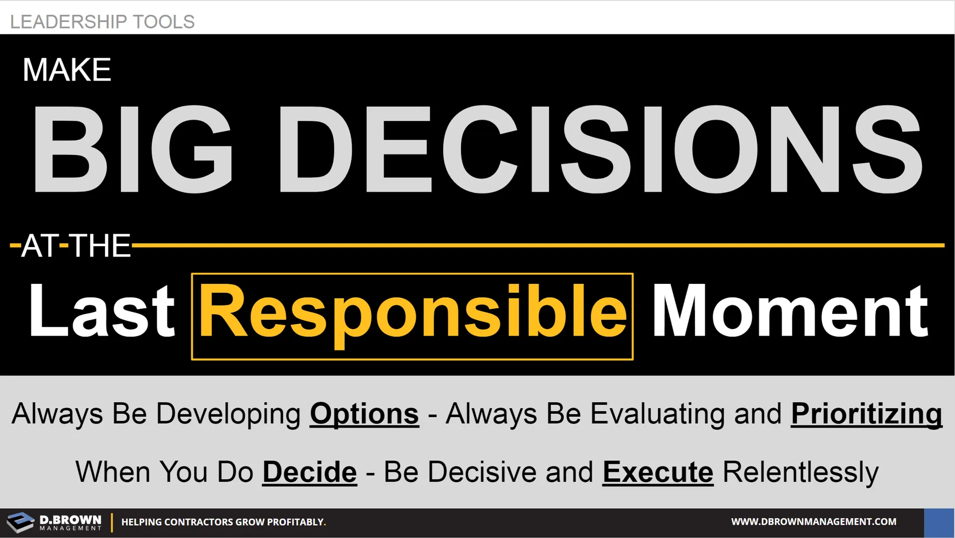 - Set a decision timeline and communicate it to those involved so they don’t think it is procrastination for the sake of procrastination. Know the last possible moment you can make the decision where the advantage of waiting reaches a point of diminishing returns.