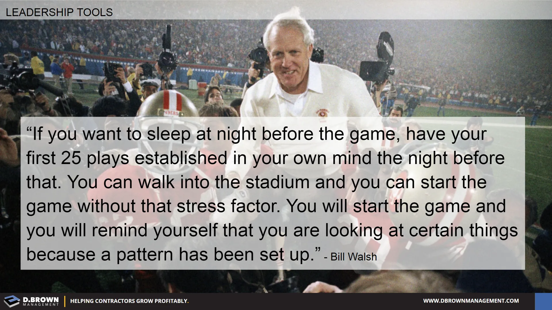 - Bill Walsh describes this as the ability to see patterns once the game begins that allow you to make quick changes.