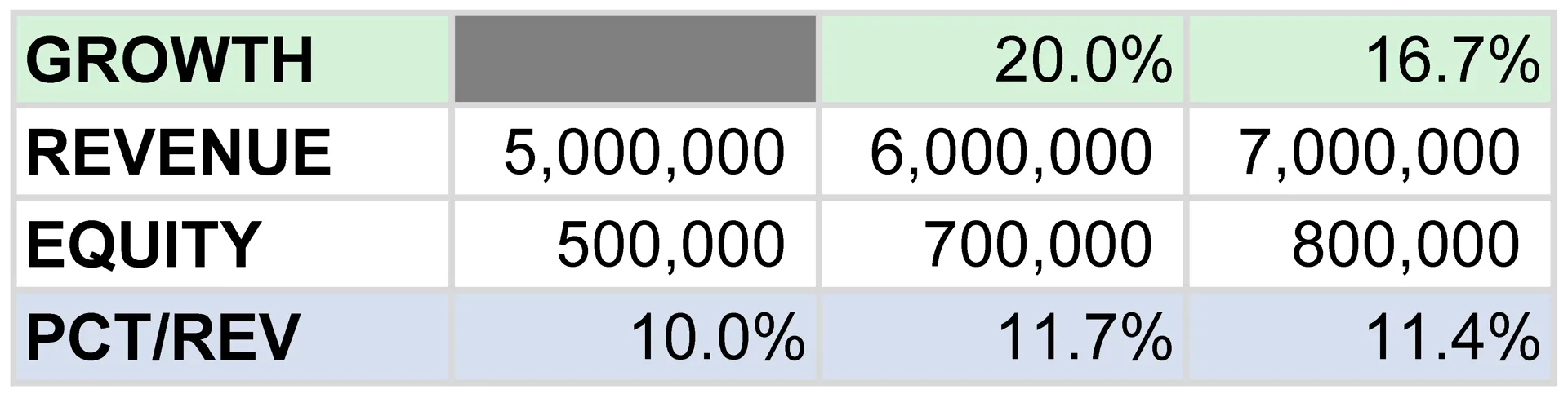 - Since you are using your capital to build work over the following year, you will want to run similar calculations looking at the revenue for the following year. For example, the second year shown ended at 11.7% but started at 8.3% (500K/6M).