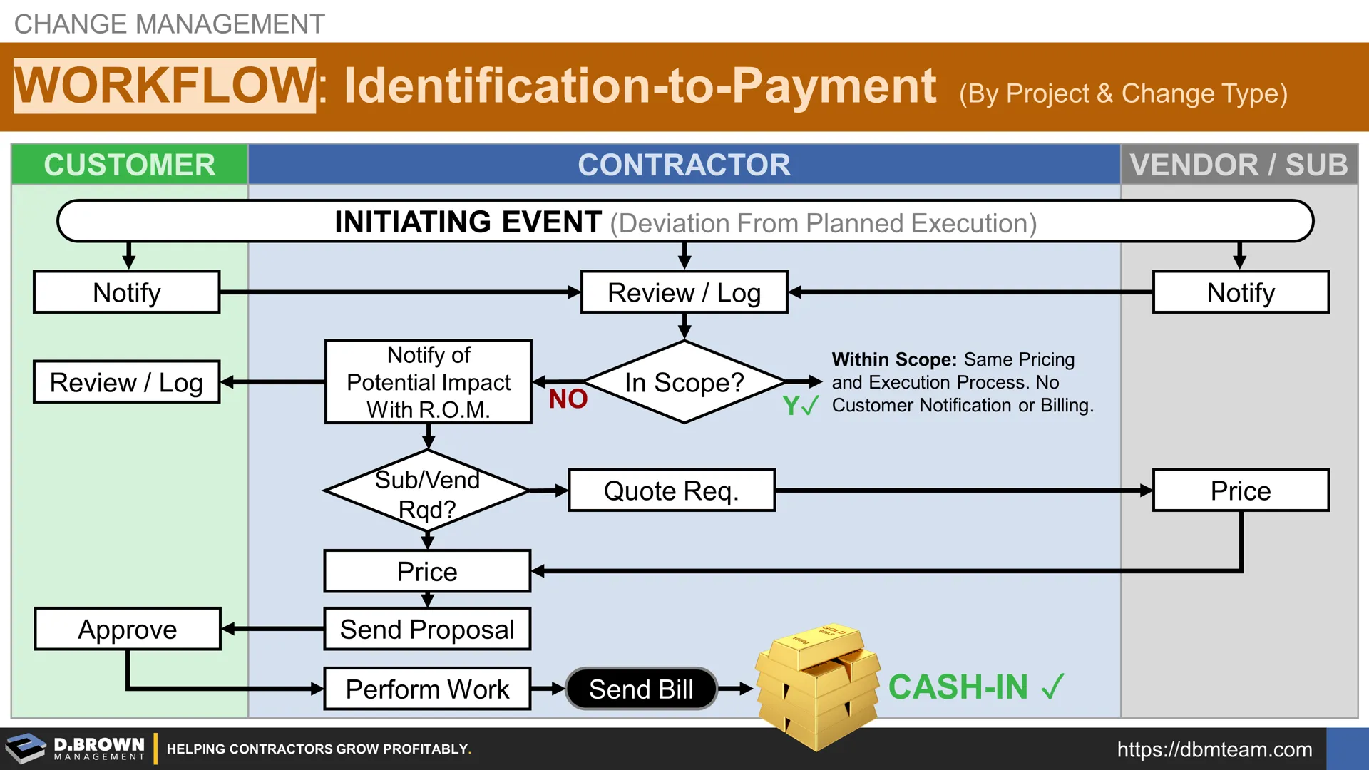 - Do we have a good process including people with the right experience to identify every deviation from the planned execution of the project? This is where it all begins and requires the most experienced people to identify RFIs and changes as soon as possible. This does not mean you will get paid for all of the changes or even submit them, but identifying and logging them is a crucial first step.