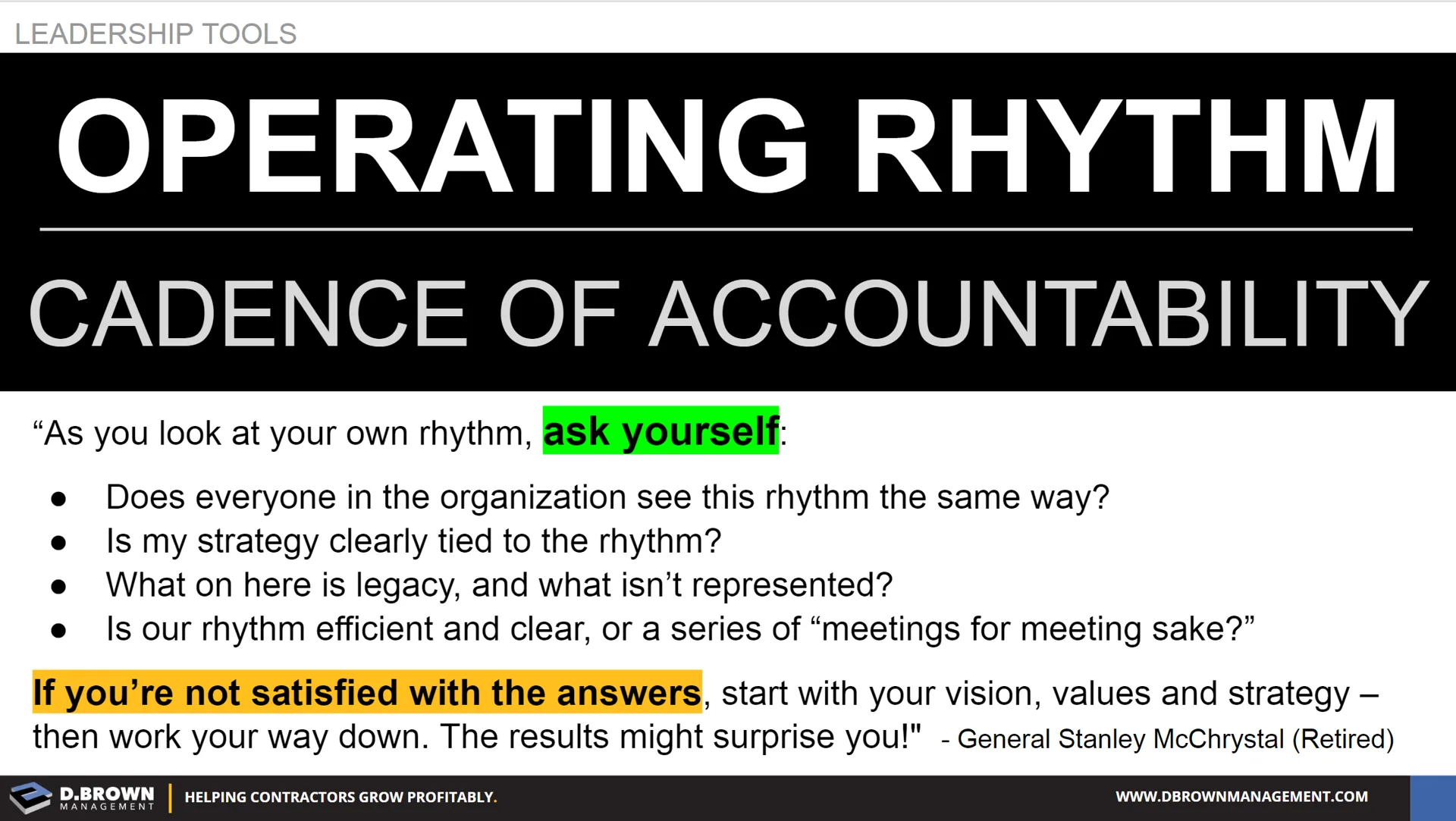 Retired General Stanley McChrystal and his team talk about these Operating Rhythms in their books Team of Teams and One Mission