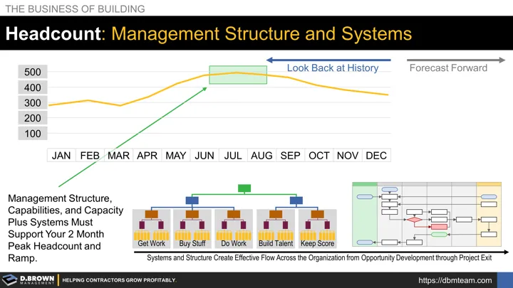 Headcount drives many of the changes required in a contractor's management structure, management systems, strategies, and leadership focus. These are the stages of contractor growth.