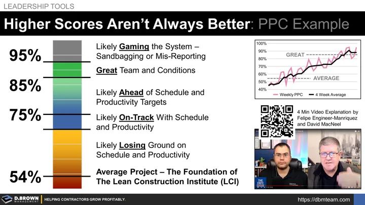 David MacNeel from On Point Lean describes that higher scores aren't always better in this interview with Felipe Engineer-Manriquez on the EBFC (Easier, Better, for Construction) Show (4 minutes starting at 0:20:00)