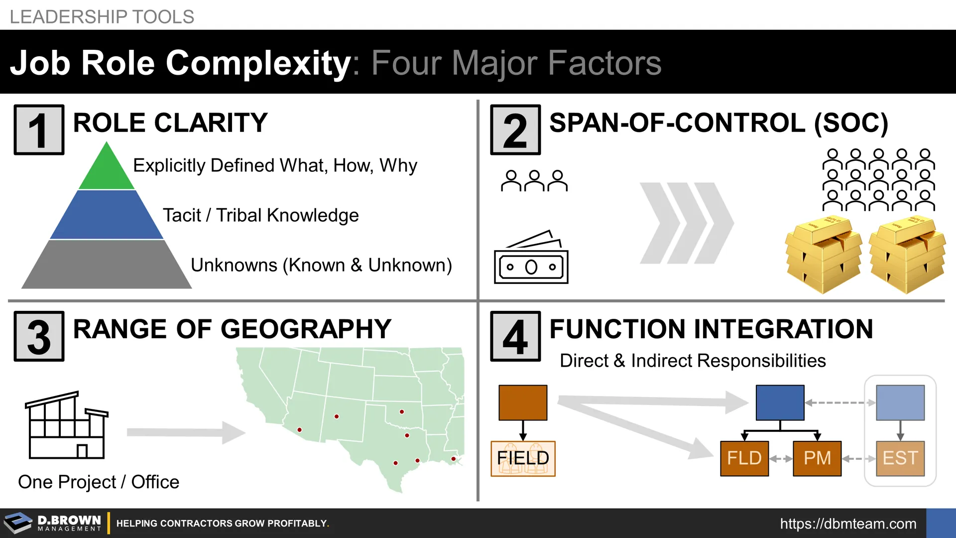 - Span-of-Control (SOC): Quite simply, the more headcount and other resources (fleet, cash, etc.) the role is responsible for increases the complexity of the role. A General Superintendent with a 50-person or 150-person SOC are two very different roles and people, though there are a lot of similarities.