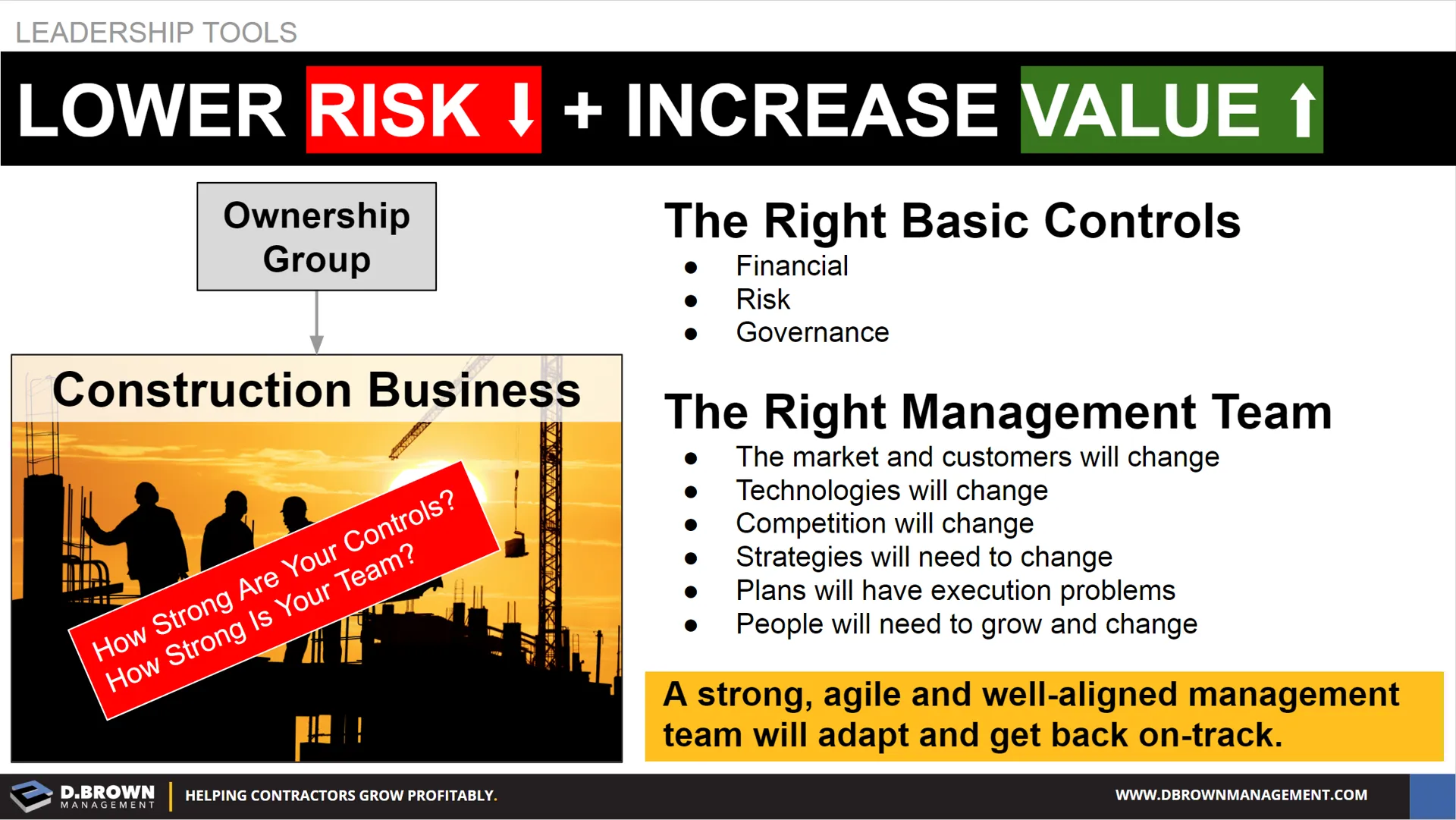 - Develop the right levels of controls that provide reasonable capital protection for the ownership while allowing the management team the flexibility necessary to operate the business.