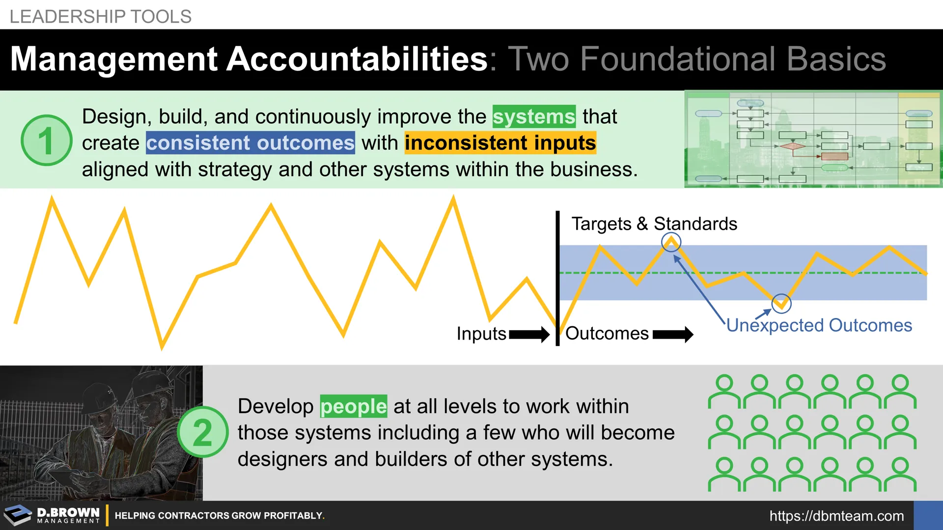 - Develop people at all levels to work within those systems including a few who will become designers and builders of other systems as the contractor continues to evolve. This is what "Succession at All Levels" means on the Contractor Scoreboard.