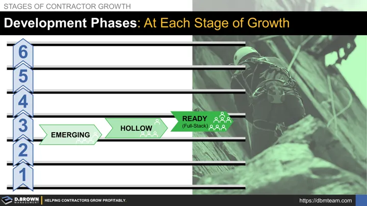- Note that a team can move from "Ready" to scale to the next stage of growth back to "Hollow" very quickly with a single key person either retiring or being recruited away. The dichotomy of growth is that to grow you need people and people are hard to attract but without growth, there is no opportunity and people will be even harder to attract or will leave. Talent at the leadership levels for contractors will only continue to worsen through 2030.