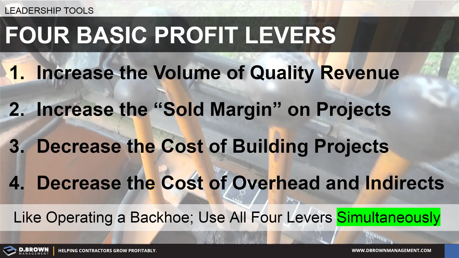 - Increase the “Sold Margin” on projects by finding the customers that will pay the most for the capabilities that you have and by building capabilities that the market places a higher value upon like advanced preconstruction services.