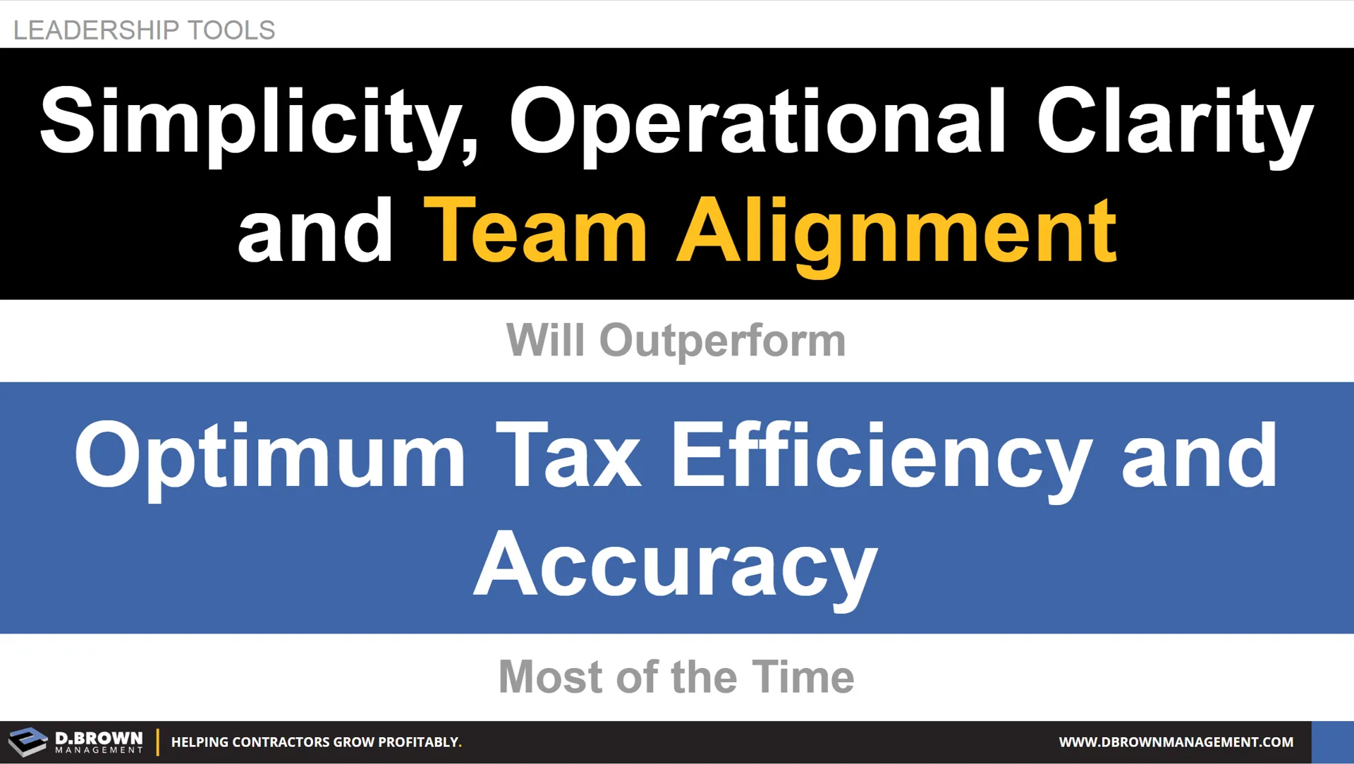 Leadership Tools: Simplicity, Operational Clarity and Team Alignment will outperform Optimum Tax Efficiency and Accuracy most of the time.