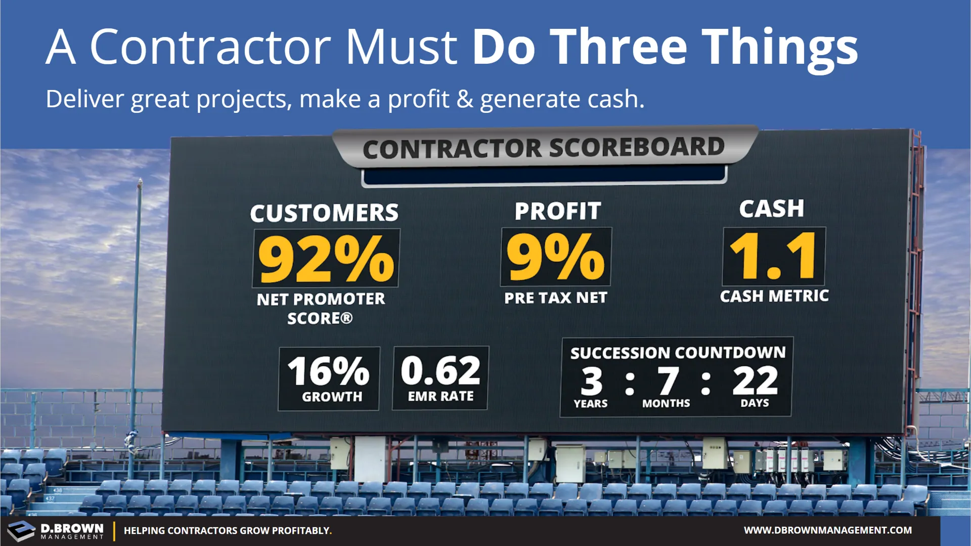 - Understand what both this additional leverage and assets will mean to your financial partners including bank and surety as well as other investors in the business.