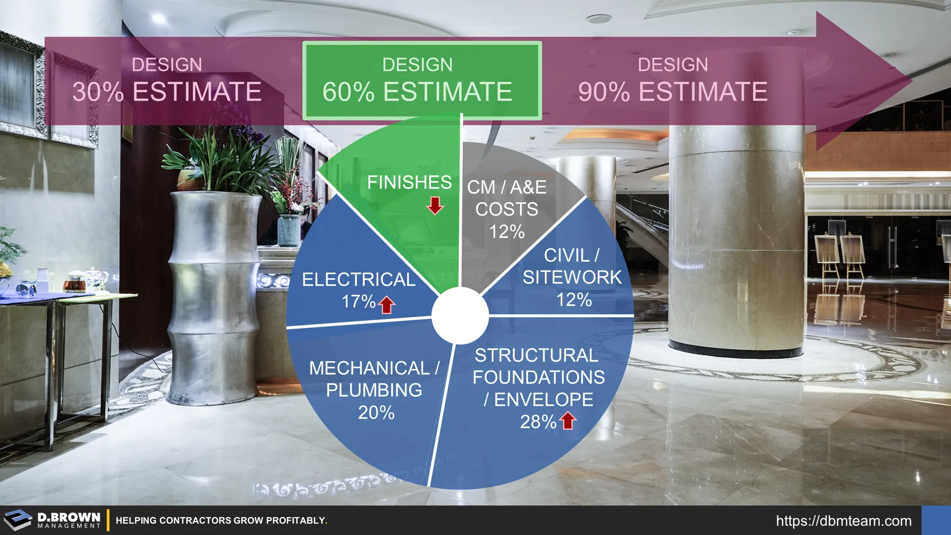60% - Budget increases in critical systems including structural and MEP force value-engineering into the finishes because the design is too far along to cost-effectively make changes elsewhere.