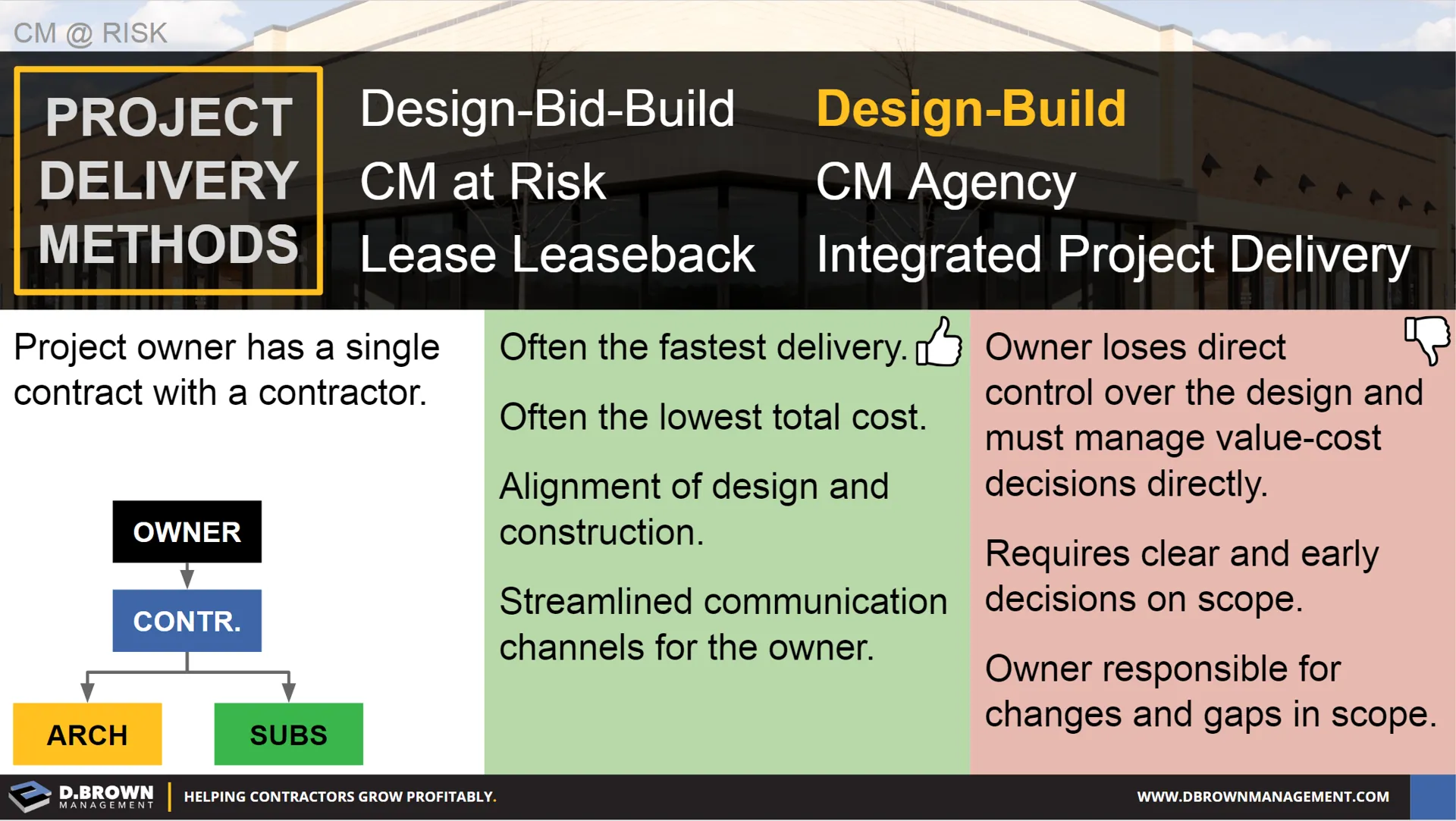 This integrates construction and design by putting the contractor fully in charge of the process which shortens delivery timelines and substantially cuts change orders.