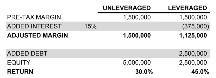 Remember that while you can use debt to increase Return-on-Equity, as shown in the example below, it can also hinder long-term resiliency.