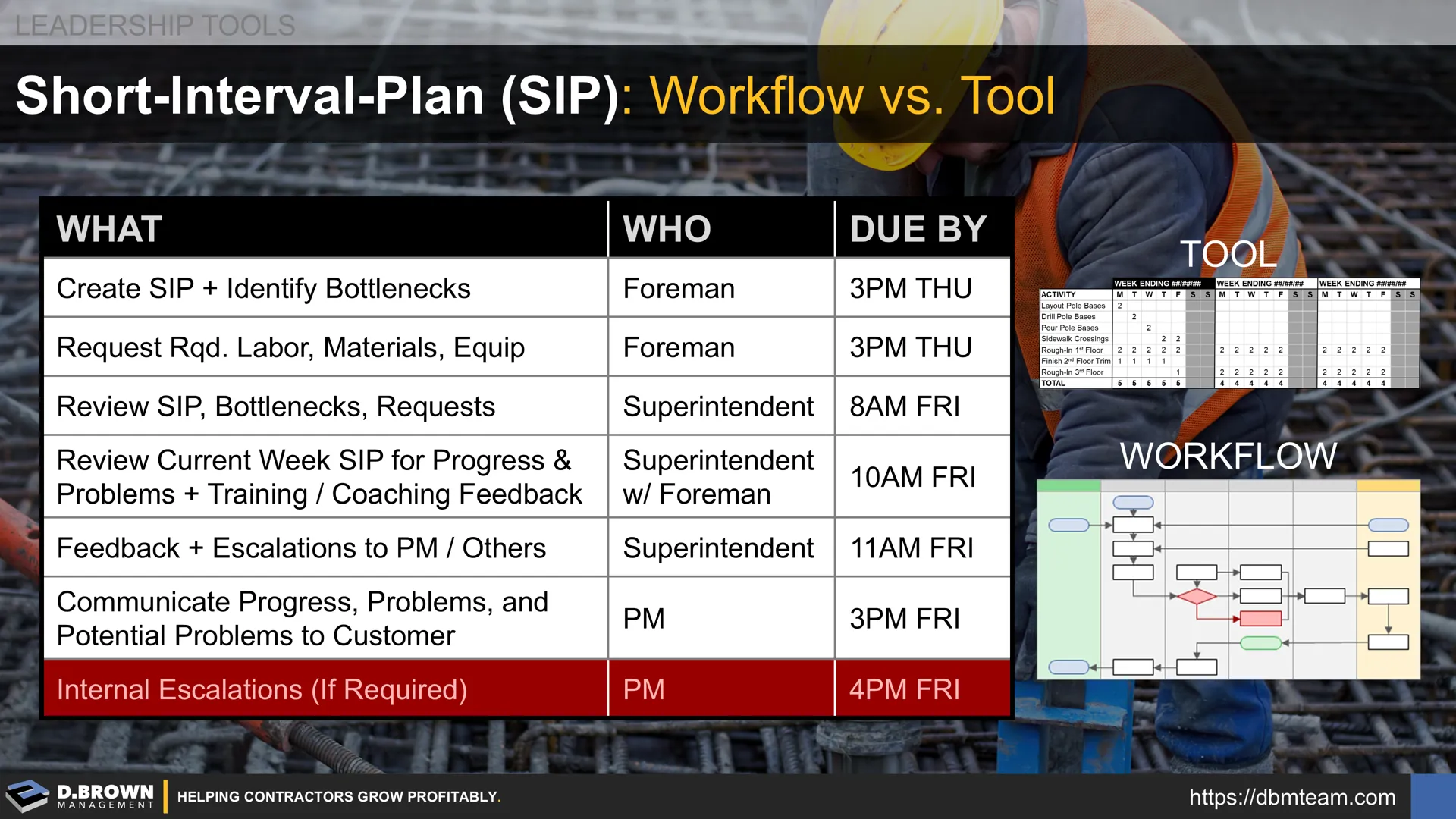 - Review Current Week SIP for Progress & Problems Identifying Training & Coaching Feedback: Superintendent, weekly by 11AM Friday.