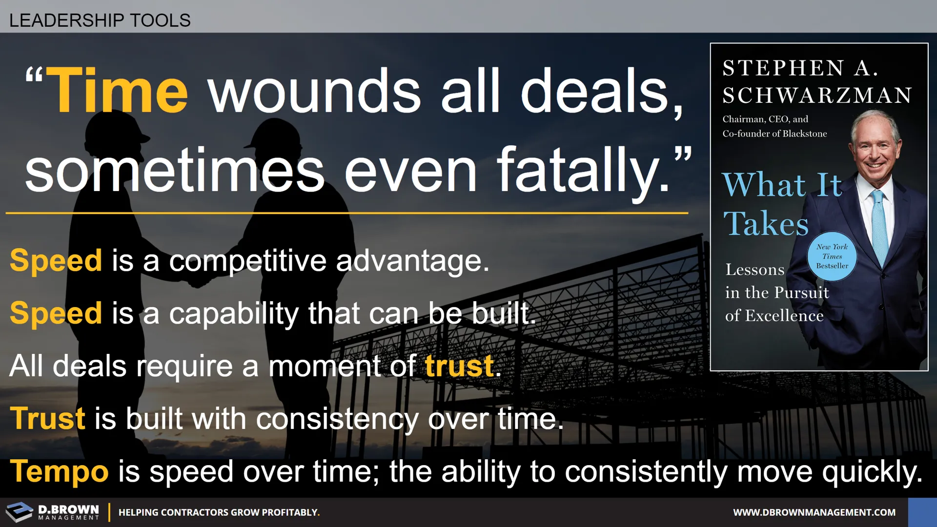 Contractors work through hundreds of deals each year, including negotiating to win new work, joint ventures, recruiting key talent, successions, and mergers and acquisitions. Private Equity is playing a larger role in the construction industry and there are many lessons that can be learned from their playbooks, such as how they make deals and how to quickly improve business results.