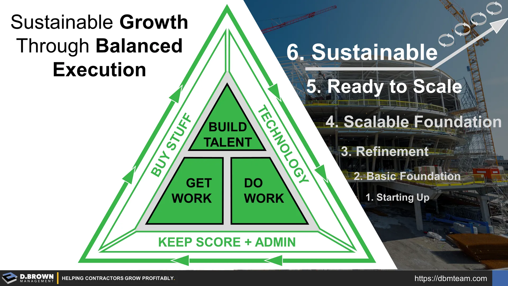 We define sustainable growth as a contractor being able to consistently achieve business outcomes that are 2-3X industry benchmarks including safety, while growing, and having succession readiness at all levels.
