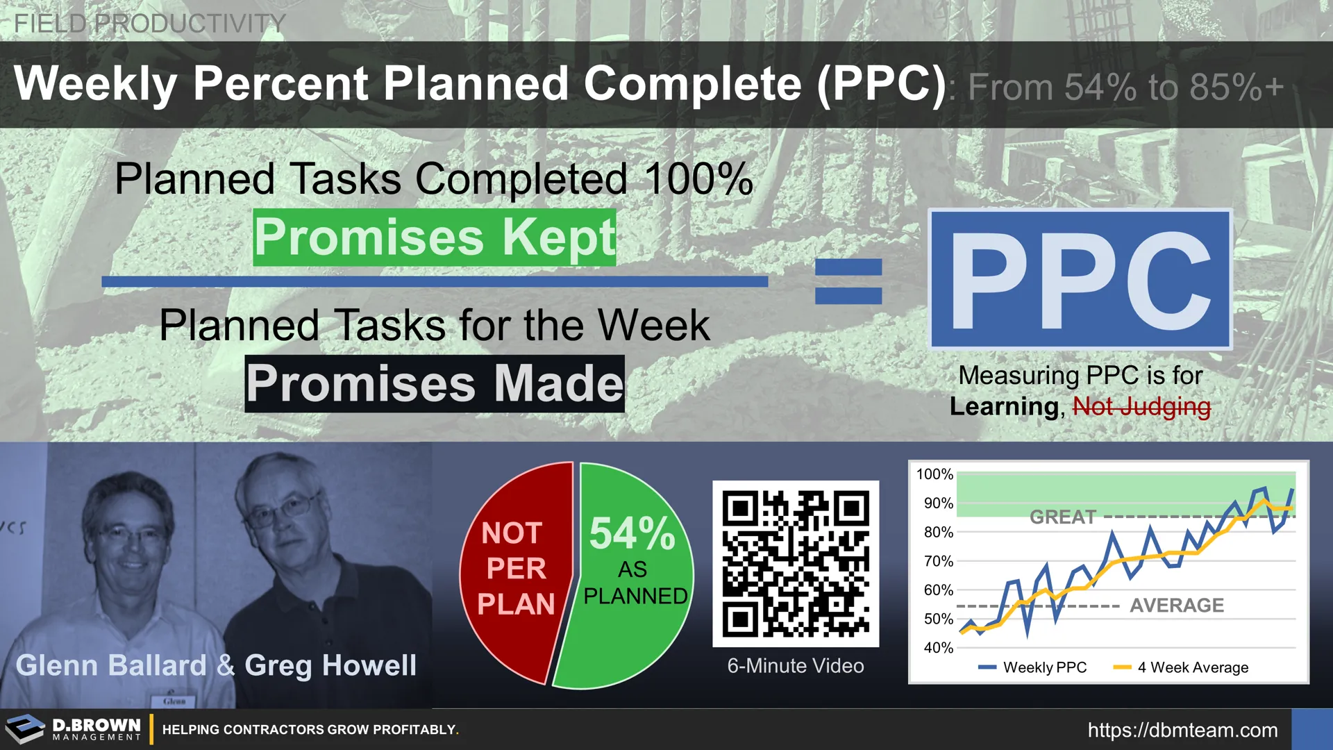 Measuring Percent Planned Complete (PPC) each week and continuously improving is one of the foundations of the Last Planner System (LPS). Whether you are on a project using LPS or not, you can use PPC as part of a Foreman Coaching Program and your Project Management System including escalation and communication plans to keep your projects moving forward.