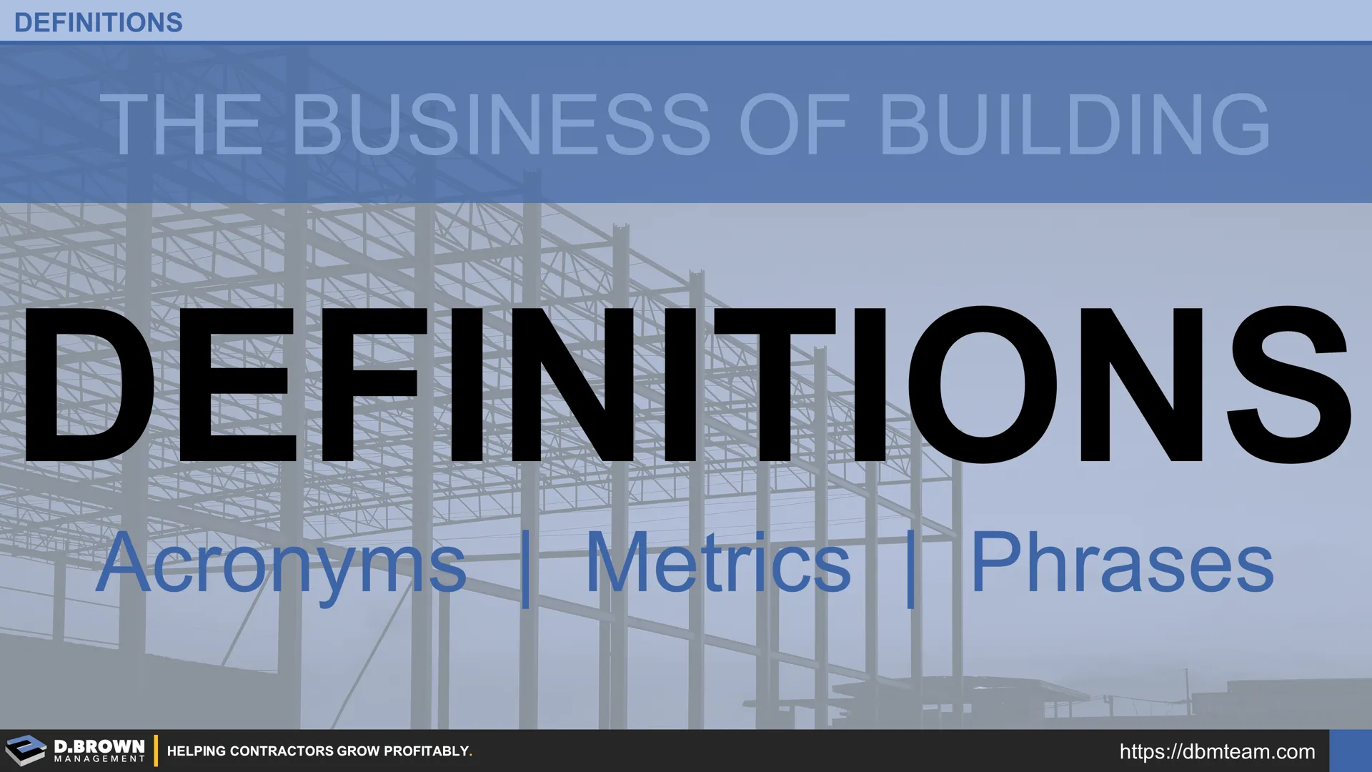 Our objective with this series is to create an overview of the most important impactful definitions, acronyms, metrics, and phrases for contractors.