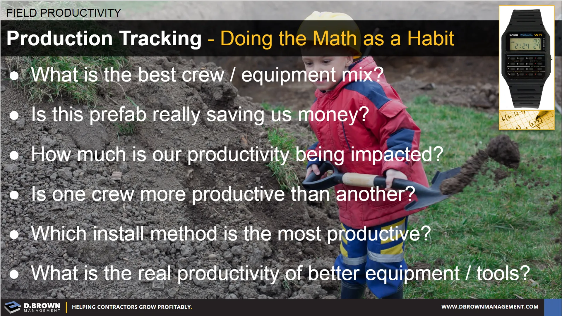 With all this cool technology we must remember that the foundation of great productivity rests in the people. Great field leaders have been tracking productivity and making enhancements with pencil, paper, calculators and watches for many years. The integration of the watch and the calculator was one of the bigger technology enhancements from a few decades ago!