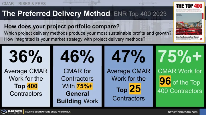 - The Top 400 Largest GCs used CMAR on 36% of their projects overall.